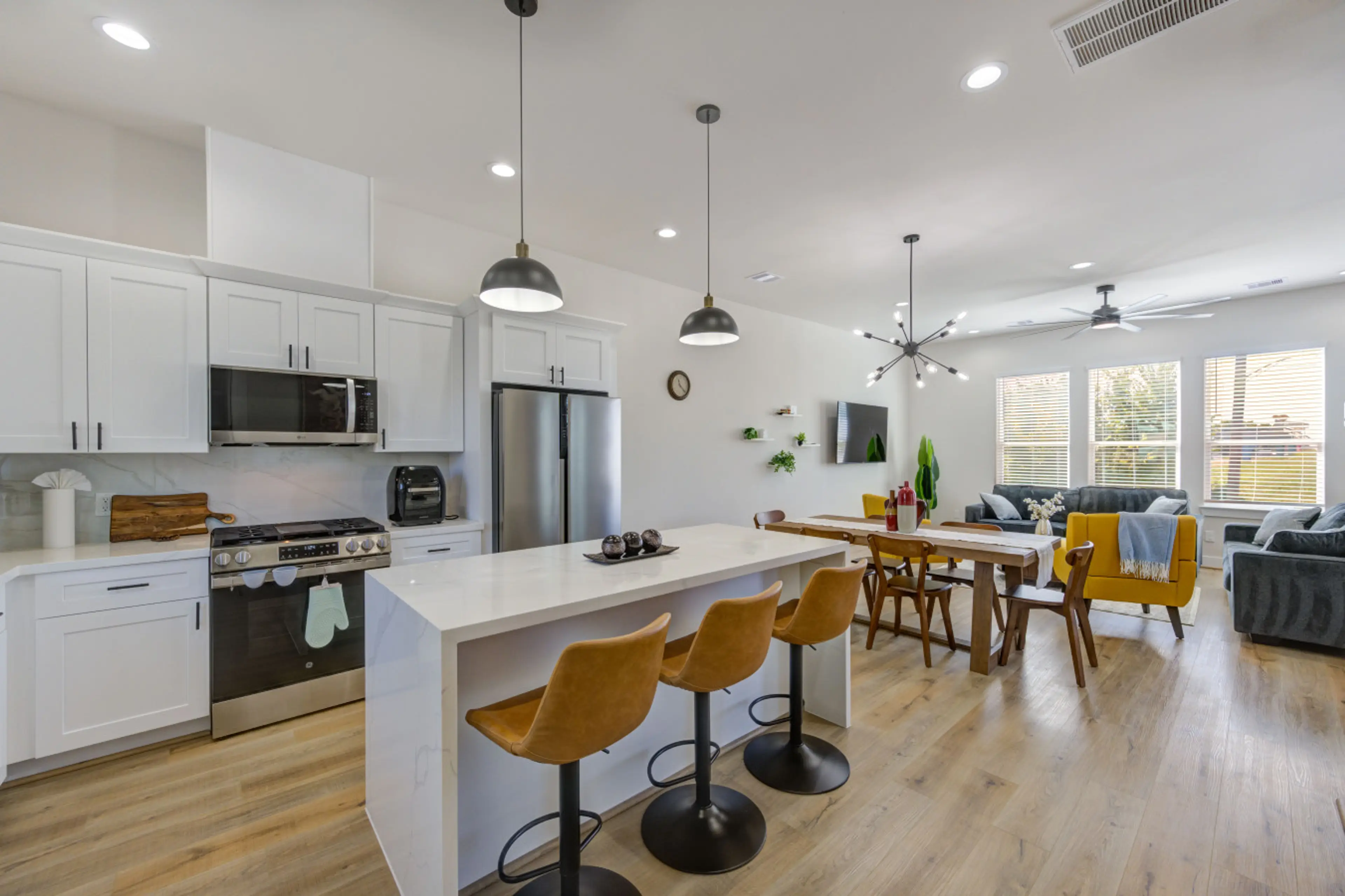 Welcome to your Houston getaway! This stylish 3-bedroom home is located in Northside Village, one of Houston’s fastest-growing neighborhoods, just minutes from Downtown, Midtown, and the Heights. With space to sleep up to 10 guests, this home is perfect for family gatherings, friend trips, or busin...